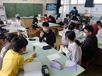 2組は国語、人物の心の動きについてワークシートをもとに意見交換です。