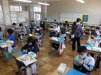 生活科で学校探検をしました。今回は2年生が1年生を連れて学校のいろいろな部屋をまわり、簡単にそれぞれの部屋の役割を説明しました。16班まである、なかよし班ごとに体育館から探検スタート。密にならないように班ごとに、まわる部屋の順番は違います。2年生は1年生を連れて学校をまわることで、お兄さん、お姉さんになったようでした。1年生も楽しく学校探検をしていました。