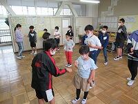 1年生が楽しめるように6年生が中心になって工夫を凝らし、「なかよし班ごとの遊び」と「学校探検スタンプラリー」をやりました。