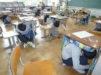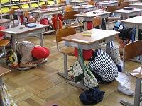 まず姿勢を低くし、頭部を守り、動かないシェイクアウト訓練について、今週の月曜日に指導しておき、本日実施しました。