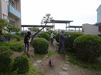 庭木の剪定やプール清掃、校庭の除草、教室のエアコンフィルター掃除など、日頃なかなか手が回らない所を隅々まで行っていただきました。
