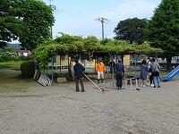 施設部長さんやPTA会長さんの挨拶をいただいたあと、各担当場所に分かれて、8:30まで作業を行いました。