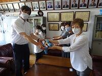 商工会女性部の4名が来校し、6年生児童にマスクケースを寄贈してくださいました。