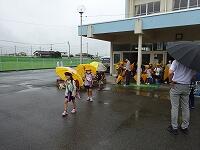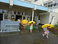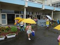 しかし、校庭に大きな水溜まりができてぬかるんでいるときには、整列することがむずかしいので、方面別に時間差で下校させる方式をとっています。
