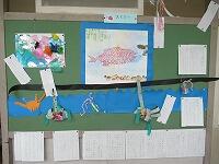 2年生に「スイミー」のお話の紹介文を書いてもらい一緒に掲示してあります。