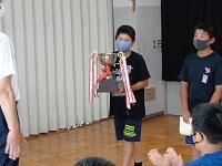 多読賞や野球やバスケットでの活躍でいただいた賞状やカップ、楯などを授与しました。
