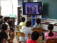 校長先生からのお話では、スライドで1学期を振り返るとともに、いろいろな取組に頑張ってきたこと成長したことなどが子どもたちに伝えられました。