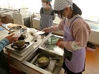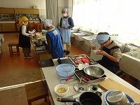 以前はグループで作っていましたが、感染症対策のため、一人一人順番で自分の分だけ、片手鍋で作るようにしました。