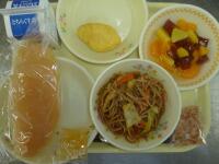 コッペパン、牛乳、オムレツ、富士宮焼きそば(静岡県)、ぶどうのジュレポンチ(山梨県・長野県)、りんごジャム(山梨県・長野県)です。