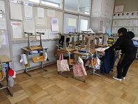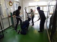 不審者役を男性の先生方でおこない、教室では侵入を防ぐためのバリケード作りなど、真剣な態度で取り組みました。