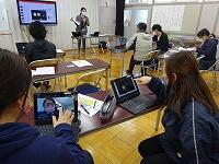 児童下校後の放課後、タブレット端末をより効果的にできるようになるための研修会を行いました。