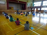 業間の時間に、第1回通学班会議を体育館で行いました。