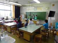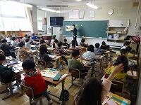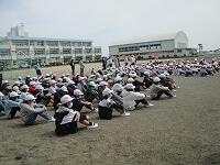 校庭で校長先生から訓練の大切さなどのお話を聞いたあと、各教室に戻り担任の先生から防災についての話を聞きました。