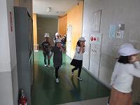 火災を想定した訓練で、子どもたちはしっかりと口元をハンカチで押さえながら避難しました。