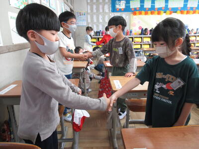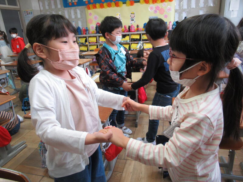 1年生の道徳の授業で、「はじめましてのあくしゅ」という学習をしました。