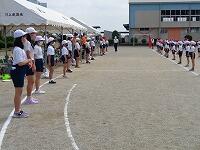 1~4年生は、演技の入退場や進行の確認に集中して取り組み、5・6年生は、運動会を運営する立場として、自分の演技だけでなく、係の仕事の確認もしていました。