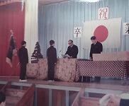 昭和45年ごろの卒業式の様子です。校庭で卒業証書の授与が行われていました。昭和50年ごろになると講堂で卒業式を行うようになりました。当時は4年生以上の児童が卒業式に参加しました。