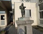 今回のテーマは二宮尊徳像です。現在は昇降口前にあり児童の登校を見守っています。台座の裏側を見ると「校舎並びに講堂落成記念 昭和10年10月13日」と刻まれています。