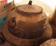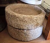 羽釜と石臼です。どちらも年代がわかりません。羽釜は西方小学校の刻印がありますが學になっていました。石臼の方は手がかりがありません。せっかく残された古いものなので、3年生の社会科で、
