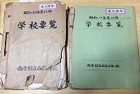 西方小学校では毎年学校要覧を作成し、学校の現況が分かるように教育委員会に報告しています。その学校要覧の綴りが昭和19年度からの分が保存されていました。昭和40年台までは、ガリ版印刷と思われるとても薄い紙になっていました。昭和50年台に入りコピーされたものと思われる西洋紙の紙になりましたが手書きでした。平成に入った頃からワープロで作成されたものになりました。今回はこの学校要覧を紐とき、西方小学校の児童数の推移を調べてみました。