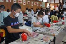 赤べこの絵付け体験では、みんな素敵なオリジナル赤べこを作っていました。