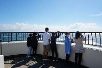崖から突き出した「潮見台」から、太陽の光で輝く海を眺めました。