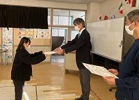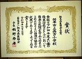 また、西方小学校独自で校長名で表彰しているものもあります。校内持久走大会と多読賞と読破賞です。今回受賞者が会議室で校長先生から賞状などを授与されました。その様子をリモートで各教室に生中継しました。賞状を受けるたびに各教室からも拍手の音が響いていました。