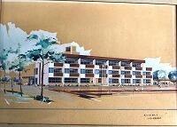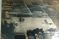 今回は新たに昭和31年撮影の航空写真と現在の校舎新築前に描かれたと思われる建築パースが発見されたのでご紹介いたします。昭和31年だと右側は西方中学校の校舎になります。建築パースは更田建築事務所の印がありました。50年ほど前のものですが古さを感じません。