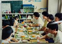 1年生の親子給食は共同調理場ができても平成の時代までは継続されていました。コロナ禍で給食は黙食になり、親子給食は実施されていませんが、早期に新型ウイルスの感染が終息し再開できることを願っています。