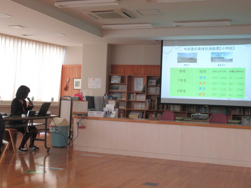 報告事項として、身体計測の平均値、健康診断結果について共通理解したあと、コロナ禍における各校の様子を発表しました。黙食、手洗い・消毒、リモート授業、体調チェック票などがその一例です。