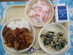 カレーのジャガイモが大きくて、ボリューム満点の献立でした。よく煮込まれていて、コクが出て味わい深く、いつもより量を多くした子もいましたよ
