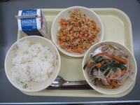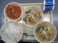 煮物は、ひじきと厚揚げに味がよく染みていて、ご飯にのせて食べた児童が多く見られました