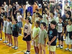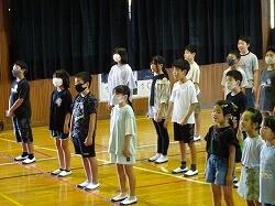 4年生が、来週の宿泊学習に向けて、布団のたたみ方や入所式等の練習をしました。