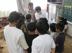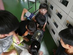 虫の観察は、餌やりや水の補給等難しいのですが、虫の姿を見るだけでなく、その命に向き合う機会でもあります。「弱ってきたら、元の場所に逃がしてあげることも大切だよ」と話しました
