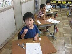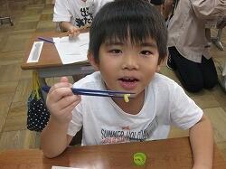 お箸の持ち方の練習では、箸を正しく動かすことで、上手に摘まめるようになりました