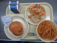 栃木市産米粉パン 牛乳 岩舟産にっこり梨のジャム なすとトマトのスパゲッティ