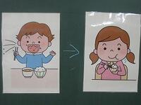 学校栄養士の先生から、給食のマナー(姿勢・会食・食事の配膳・箸の持ち方等)について学びました