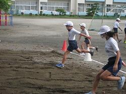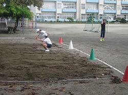 【5年生】体育:走り幅跳びの記録を取っていました。踏み切るタイミングも合ってきました。