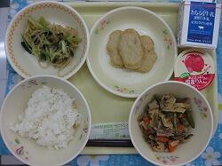 ごはん ぎゅうにゅう あじのスタミナやき ひじきとあつあげのにもの ぐだくさんみそしる