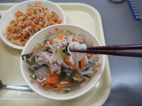 今日は、冷やし中華の献立でした。気温が高かったため、氷が入ってひんやりとした冷やし中華がありがたかったです