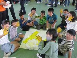 学校厳かな中にも温かみのある式典と、参列者全員参加の手形アート制作。西方小のよさがあふれんばかりの式典行事となりました期待・ワクワク