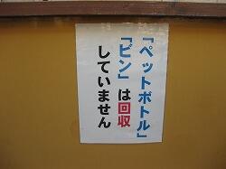 すぐ横には、このような表示もあります。どうぞ、栄養ドリンクやごま油、ドレッシング等のビンや、ビンの蓋、スチール缶は入れずに、アルミ缶だけ入れてください。(技能員さんが、一つ一つ手作業で仕分けして、とても大変なのです