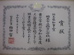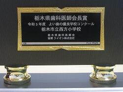 この度、栃木県歯科医師会より、よい歯の優良学校として「栃木県知事賞(県で一番の賞です)」と「栃木県歯科医師会長賞」をいただき、11月16日に宇都宮市歯科医師会館にて賞状を授与されました。