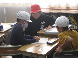 縦割り班ごとなので、当然上学年が下学年の面倒を見るのですが、とても優しく丁寧に教えています。