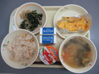 栗ごはん 牛乳 白身魚の紅葉焼き ほうれん草のおひたし じゃがいもと油揚げの味噌汁 アセロラゼリー