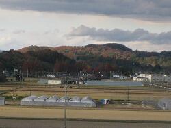 西方城址方面の山が、錦色になっていました。