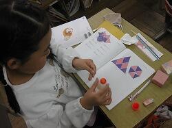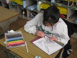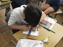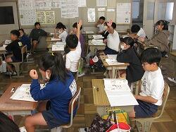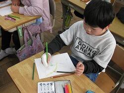 先週書いた作品をみて、めあてとなる部分ができているかどうかを振り返り、お手本や教科書で大切なところを確かめながら書き入れていました。