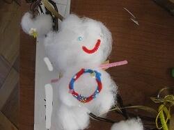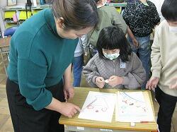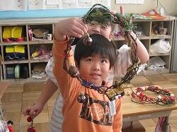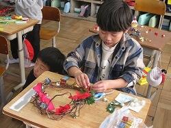 1年生が、生活科の時間に育てたサツマイモのつるを使って、リースを作っていました