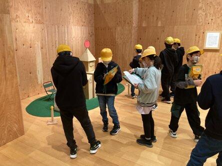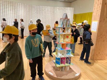 グループごとに見学しています。絵本作家ヨシタケシンスケさんの作品展を鑑賞中です