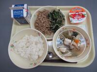 ごはん 牛乳 味噌すき焼き煮 とち介たまご焼き にらともやしのおひたし